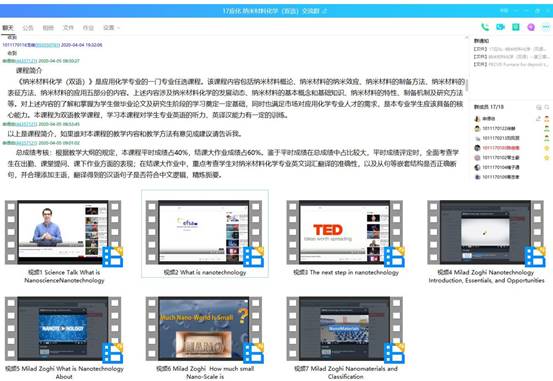 图1发布的课程介绍与上传的纳米材料相关英语视频