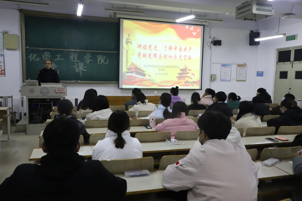 2021年11月8日晚,yl6776永利集团党委书记彭友舜同志为yl6776永利集团全体在校学生党员和发展对象80余人讲党课,学生党支部书记一并聆听了党课。党课由学院党委副书记副院长王大江同志主持。