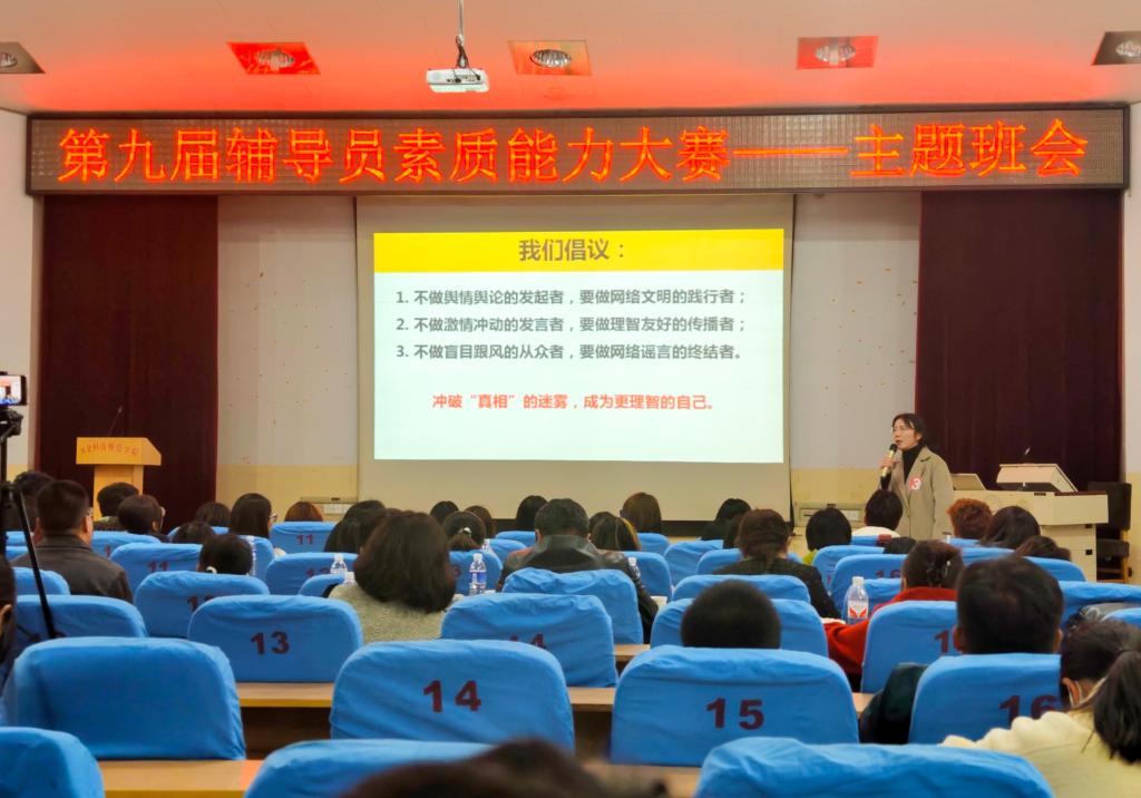 此次比赛是对辅导员班主任理论素养与政治素质、语言表达、分析问题和处理问题等方面能力的全面考核,达到以赛代练、以赛代训、以赛代学的目的,提升学校学生教育管理队伍的理论水平、专业素养和职业能力,增强我校学生思想政治教育工作的实效性和针对性。